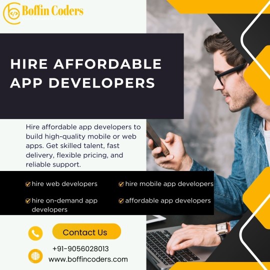 Hire affordable app developers and bring your app idea to life with ease. We create user-friendly, fast, and reliable mobile apps that fit your goals and budget. From planning to final launch, our team ensures smooth development and clear communication every step of the way. Contact us today for affordable and high-quality app development — Boffin Coders. ![]() | |