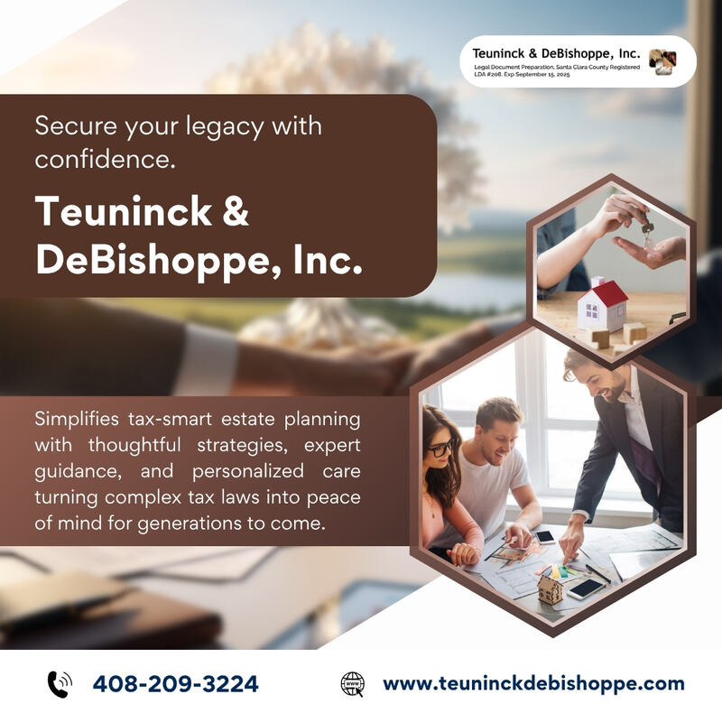 Estate planning strategies are designed to minimize tax burdens while protecting your assets. This includes planning for estate taxes, gift taxes, and income taxes on inherited assets. Tools like trusts, lifetime gifting, charitable donations, and marital deductions can significantly reduce liabilities. For professional guidance that ensures every detail is covered, use Teuninck & DeBishoppe, Inc. Call 408-209-3224 for more information. ![]() | |