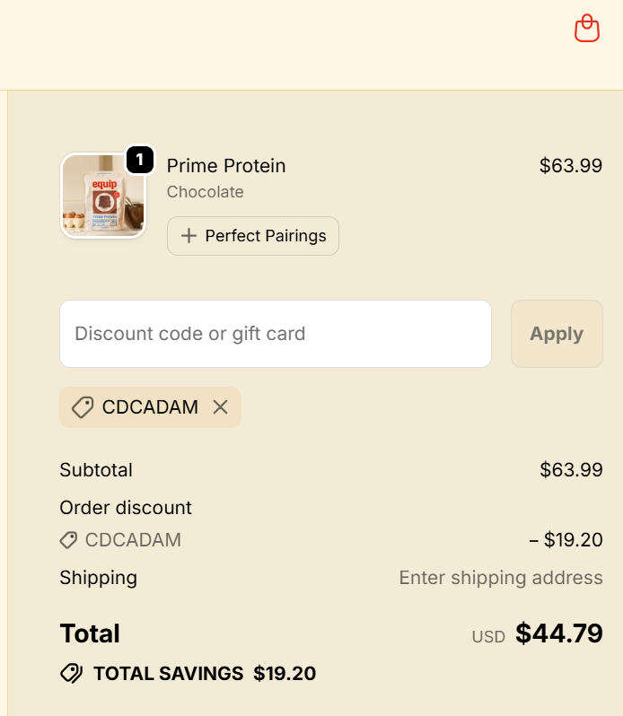 Shop Equip Foods now and get 30% off all items with the coupon code CDCADAM at checkout. ![]() | |