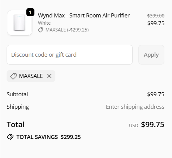 75% OFF Wynd Max HEPA Smart Air Purifier | |