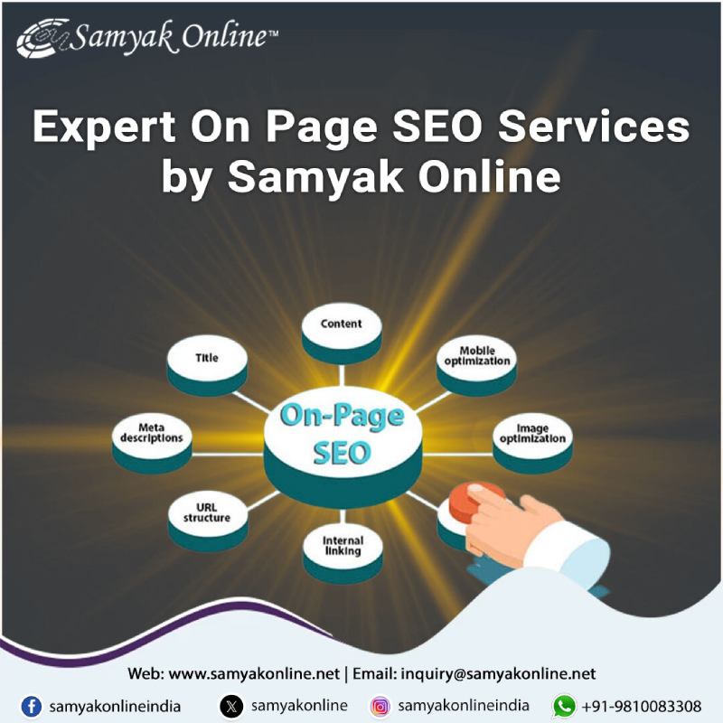 Get your website optimized for search engines with on page SEO services from Samyak Online. Our experts focus on content structure, internal linking, and technical SEO to boost visibility. Improve your rankings and user experience with tailored on-page strategies. Drive better results with clean code, schema, and keyword placement. Samyak Online Services Pvt. Ltd M-4, Mezzanine Floor, Samrat Bhawan, Ranjit Nagar Commercial Complex New Delhi- 110008, India ![]() | |