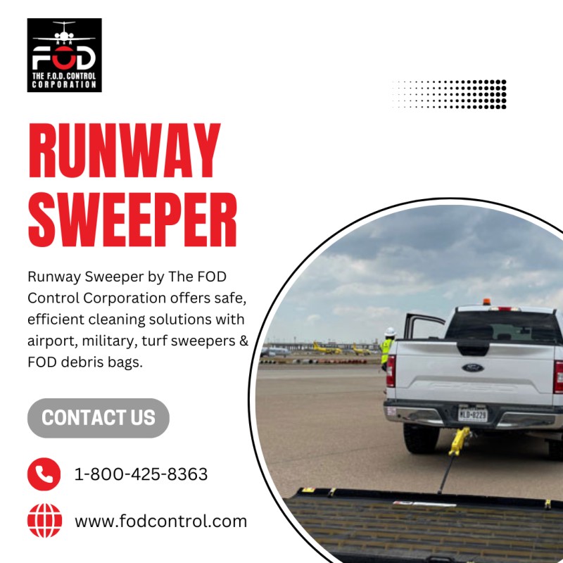 | Runway sweeper solutions from The FOD Control Corporation are designed to keep runways, military bases, and turf areas safe and clear of foreign object debris (FOD). Our advanced sweepers deliver reliable performance for diverse environments, ensuring efficiency, safety, and durability. We also provide high-quality equipment and accessories specifically designed to meet the professional cleaning needs. Here are more services: Airport runway sweeper Military sweeper Turf sweeper Vacuum sweepers for sale FOD debris collection bags  | |