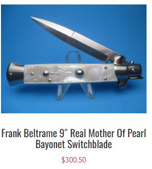 Once known for strict regulation, switchblade knives are now gaining popularity as more states ease restrictions. Professionals like law enforcement, EMTs, and military members rely on them for their fast, one-handed operation. Many, including collectors, favor the Frank B stiletto switchblade for its classic Italian style and smooth mechanics. Italian stilettos and lever locks come in a wide array of blade types; bayonet, dagger, kriss, and flat grind among them. Traditional handles once used wood, stag, and horn, but modern versions now feature colored acrylics, abalone, and even mother of pearl. Sizes range from compact 5’’ OAL to striking 18’’ OAL pieces. ![]() | |