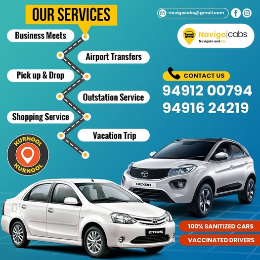 Navigo Cabs is a leading provider of cab and taxi services in kurnool for local and outstation travels. Our mission is to make transportation convenient, reliable and affordable for everyone. With our state-of-the-art booking system, customers can easily book a taxi or cab in kurnool with a few clicks, without any hassle. Our services are available 24/7, making it easy to book a ride anytime, anywhere. Whether you are traveling for business or leisure, our professional drivers ensure a safe and comfortable ride. Our fleet of well-maintained vehicles ranges from budget-friendly to luxury options, providing the perfect solution for all your transportation needs. From airport transfers to local transportation and round-trip journeys, Navigo Cabs has got you covered. Book your cab or taxi now and experience the best in cab and taxi services in kurnool ![]() | |