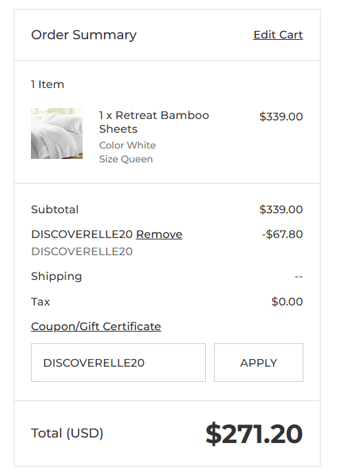 Take 20% OFF your Cariloha order plus enjoy free shipping with code DISCOVERELLE20. Shop ultra-soft bamboo bedding, apparel, and more while saving big! ![]() | |