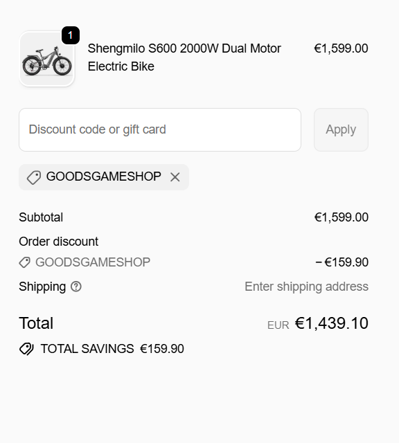 Save 10% on eco-friendly eBikes from Shengmilo with coupon code GOODSGAMESHOP. Ride greener, smarter, and cheaper — limited-time offer! ![]() | |