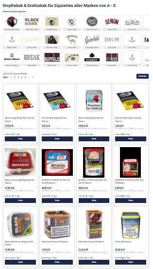 Stopf- & Drehtabak für Zigaretten » preiswert ? Kauf auf Rechnung ? Blitzversand ? Sofort lieferbar ? Shoppe jetzt bei tabak24.shop ![]() | |